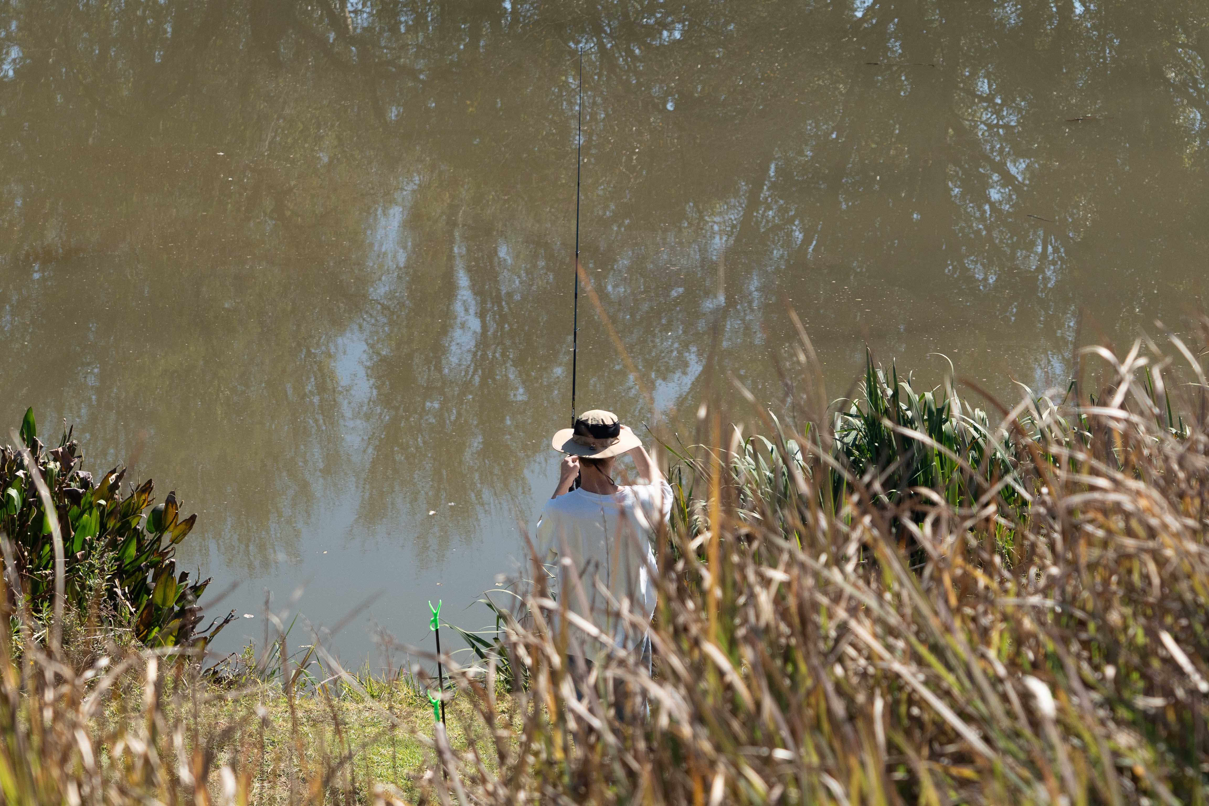 The fishermen catch a few fish, including what appeared to be a 5kg Carp, snapping away photographs before releasing them. The dams are also stocked with Bass and Bream. There is no trout, which requires the cleanest water to survive.
