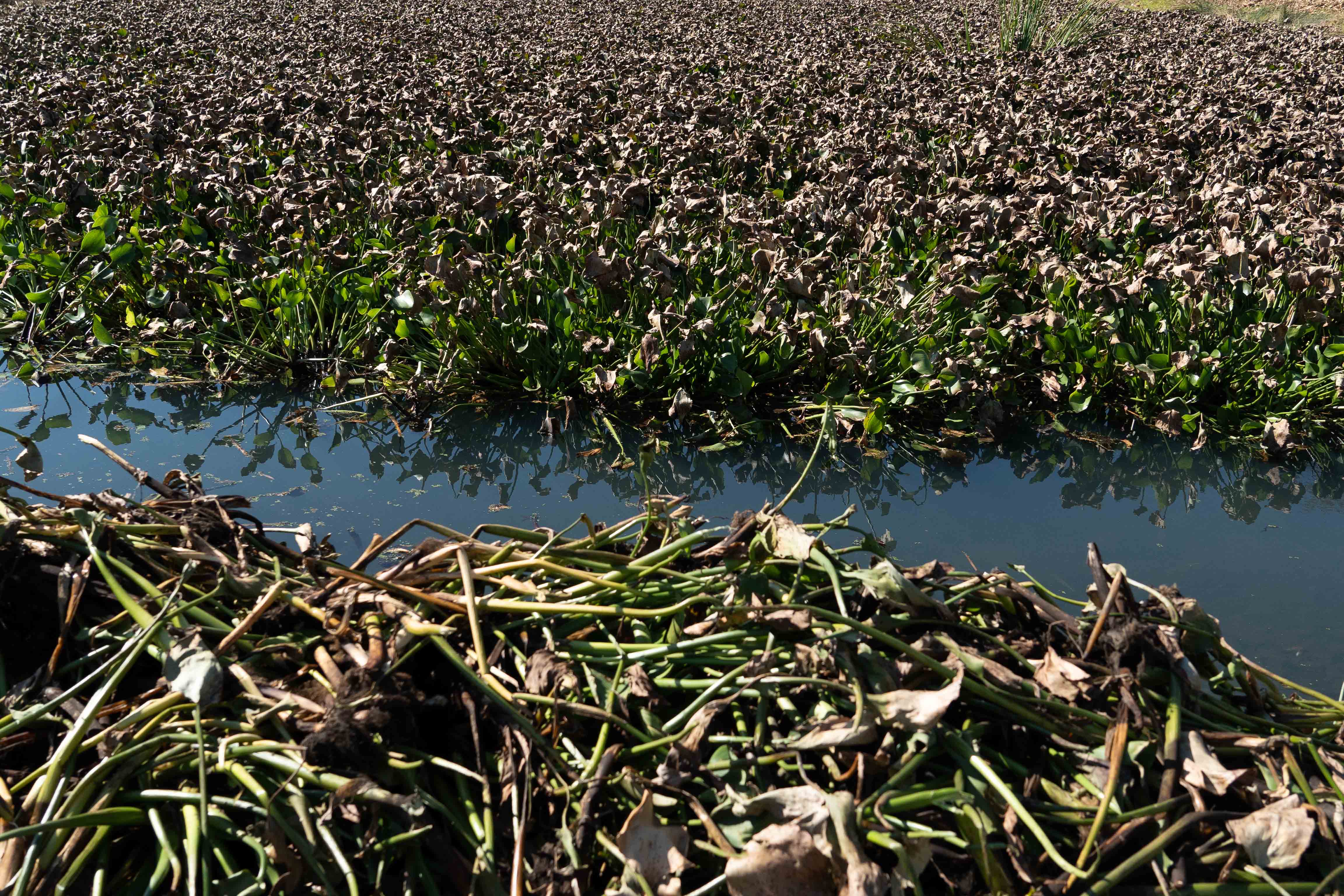 The water coming out after the hyacinth is much cleaner, but the Bains are now struggling to contain it.